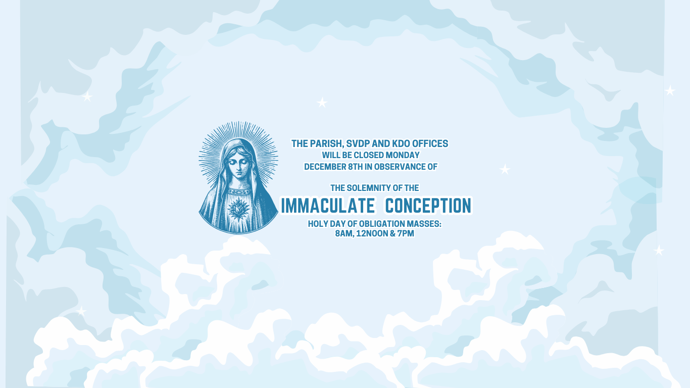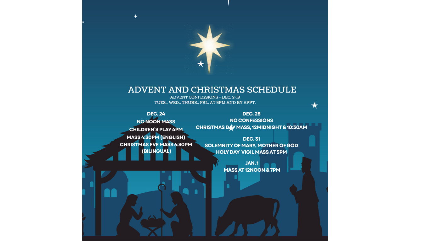 Join us for our church services every Saturday at 5:00 PM* & Sunday at 8 AM Spanish Mass & 10:30 AM / 12:30 PM English Mass.